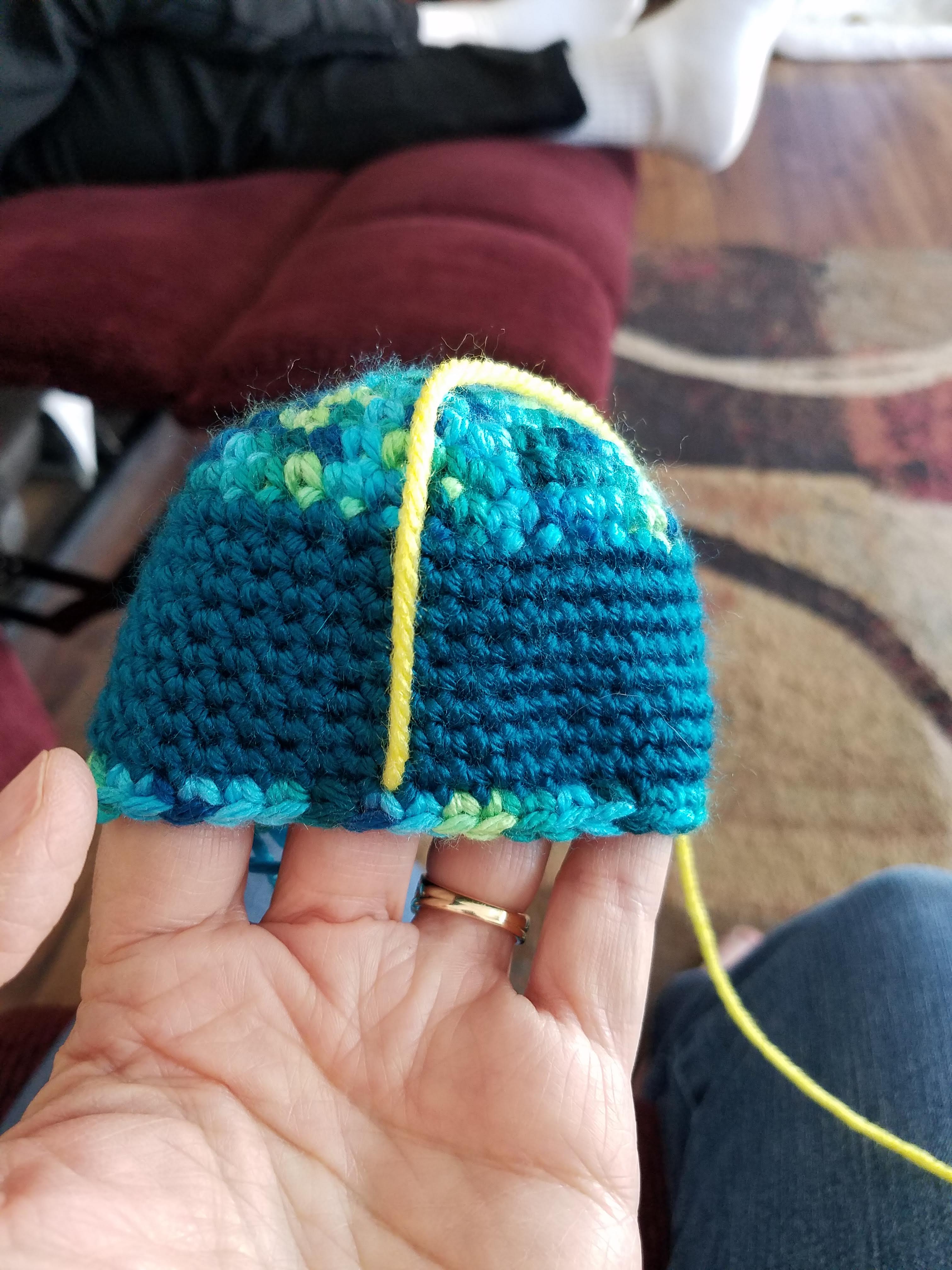 *Also, the ball can be done in a continuous round, using a stitch marker to keep track of the beginning of the round, but I am ending and starting each round separately.