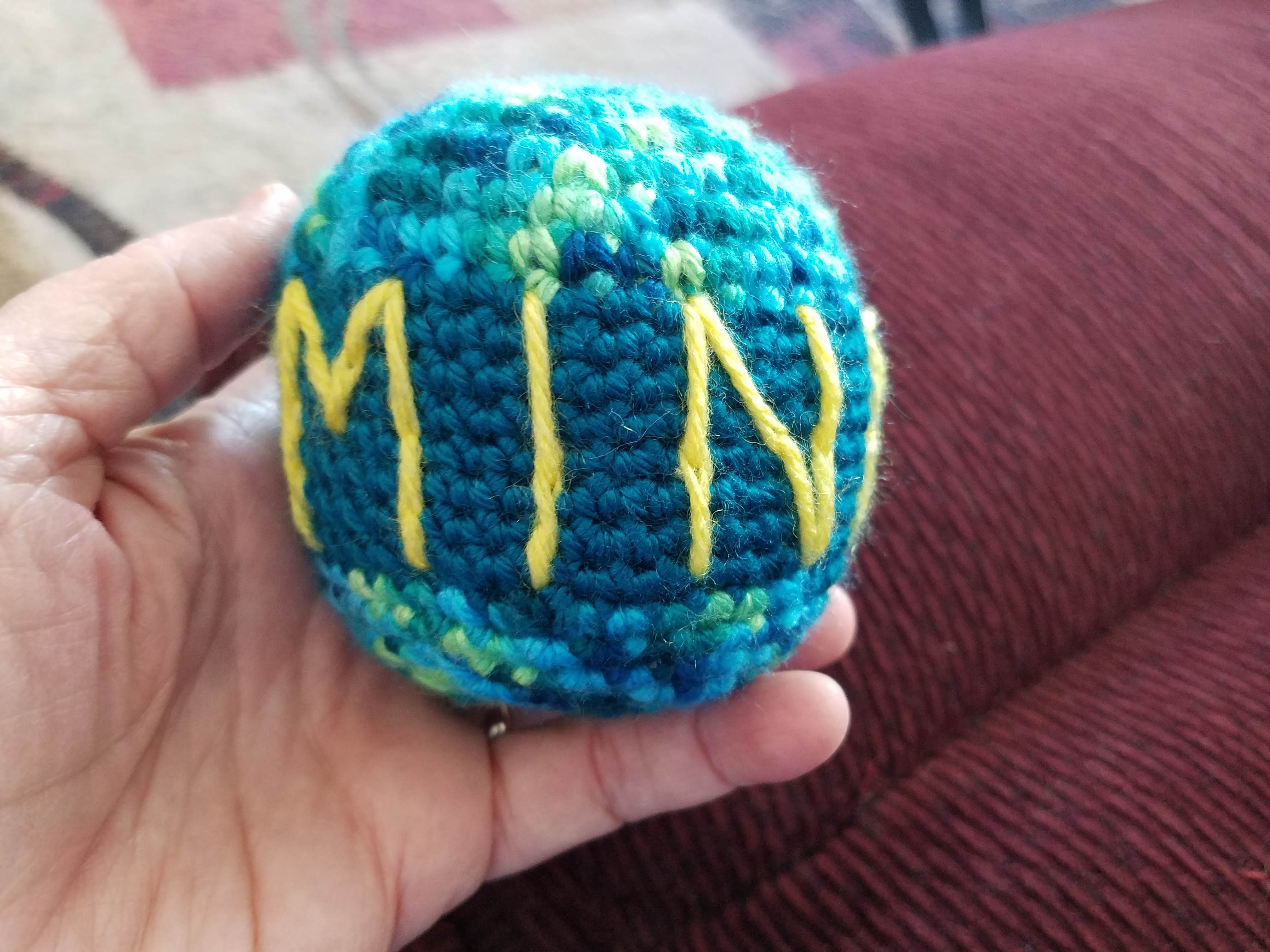 *If you want, embroider MINE on the ball at this point. It is easier to hide the ends when you are done.